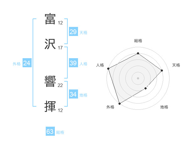 富沢 響揮さんを姓名の画数から五運を鑑定