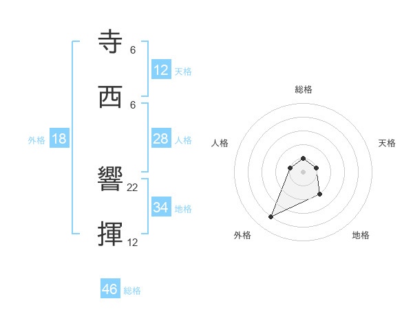 寺西 響揮さんの総格は46画の1点!