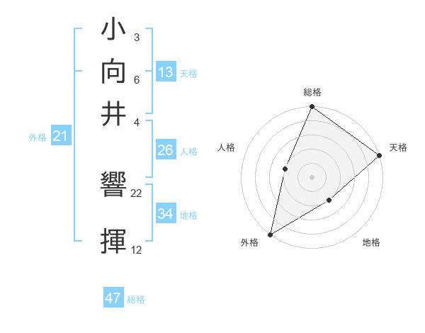 小向井 響揮さんを姓名の画数から五運を鑑定