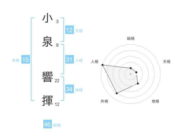 小泉 響揮さんを姓名の画数から五運を鑑定