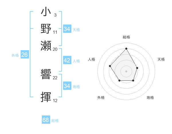 小野瀬 響揮さんを姓名の画数から五運を鑑定