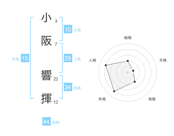 小阪 響揮さんを姓名の画数から五運を鑑定