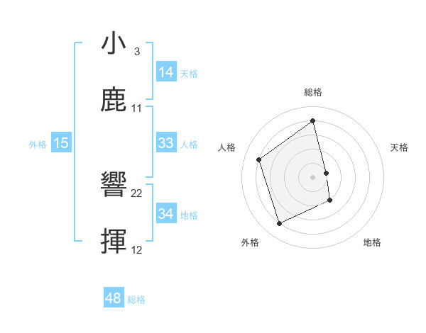 小鹿 響揮さんを姓名の画数から五運を鑑定