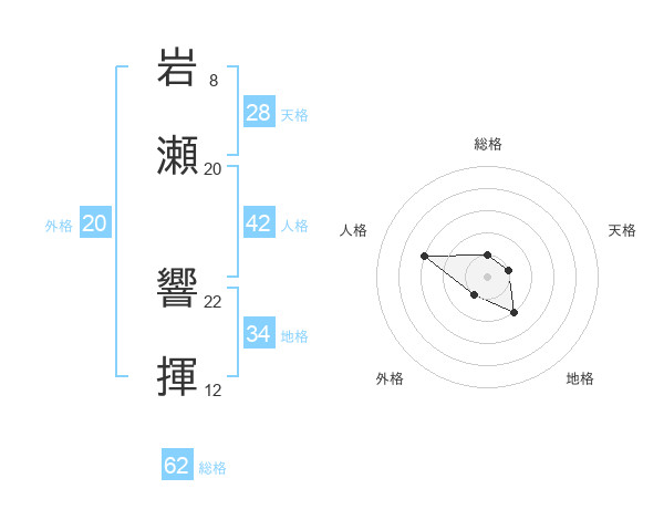 岩瀬 響揮さんを姓名の画数から五運を鑑定