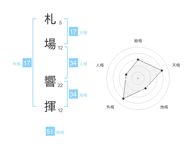 札場 響揮さんの総格は51画の3点!