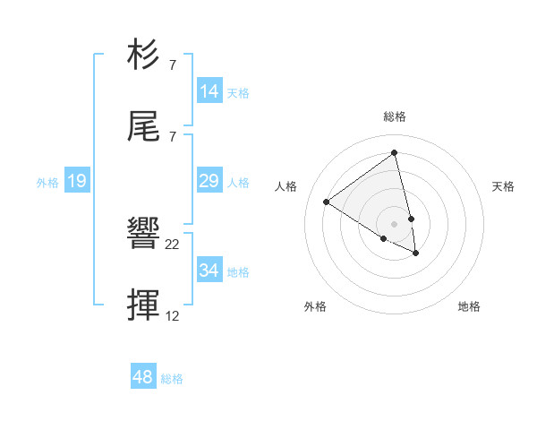 杉尾 響揮さんを姓名の画数から五運を鑑定