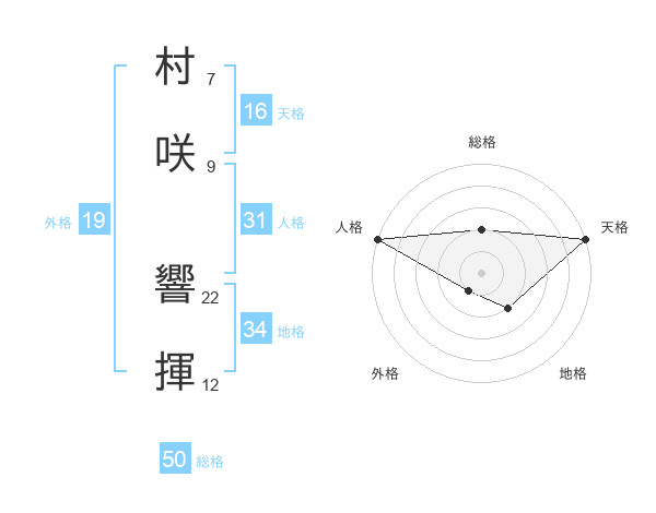 村咲 響揮さんの総格は50画の2点!