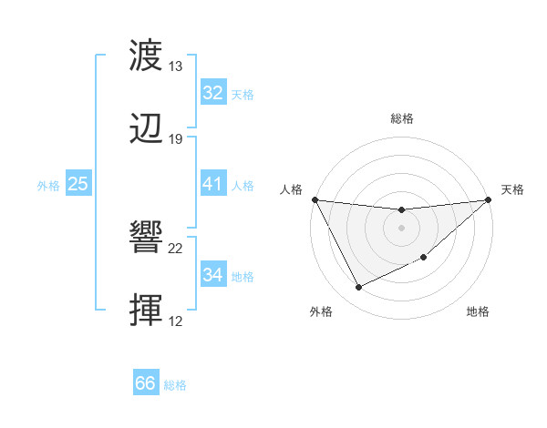 渡辺 響揮さんを姓名の画数から五運を鑑定