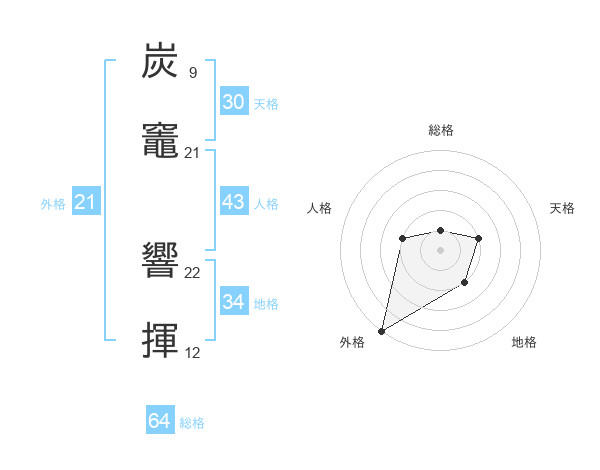 炭竈 響揮さんを姓名の画数から五運を鑑定