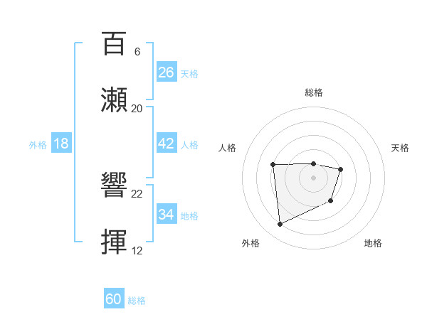 百瀬 響揮さんの総格は60画の1点!