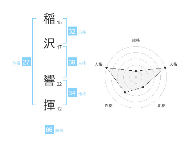 稲沢 響揮さんの天格は32画の5点!