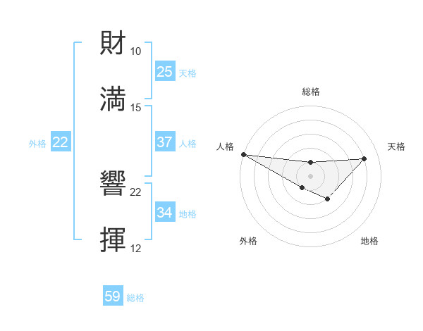 財満 響揮さんを姓名の画数から五運を鑑定