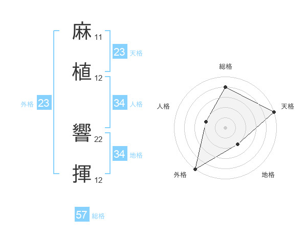 麻植 響揮さんを姓名の画数から五運を鑑定