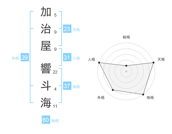 加治屋 響斗海さんを姓名の画数から五運を鑑定
