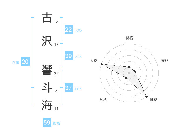 古沢 響斗海さんの総格は59画の1点!