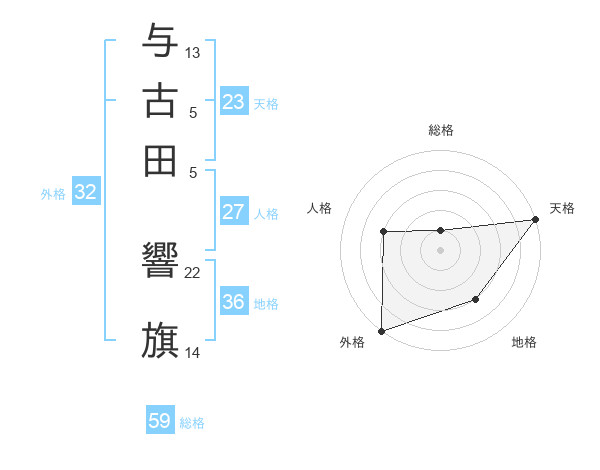 与古田 響旗さんを姓名の画数から五運を鑑定