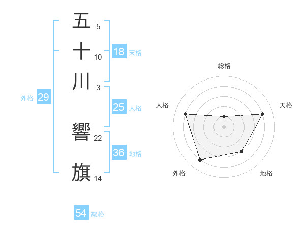 五十川 響旗さんを姓名の画数から五運を鑑定