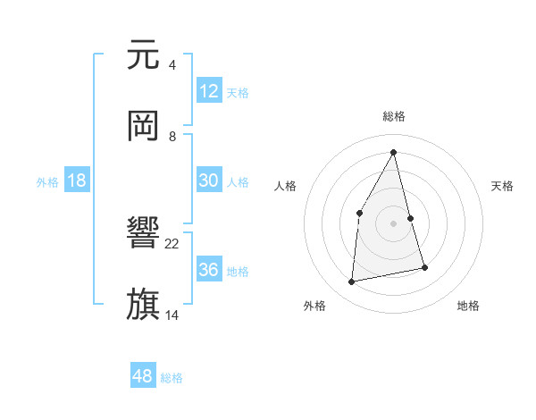 元岡 響旗さんを姓名の画数から五運を鑑定