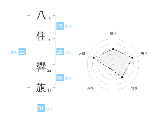 八住 響旗さんの総格は51画の3点!