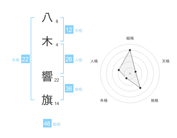 八木 響旗さんの総格は48画の4点!