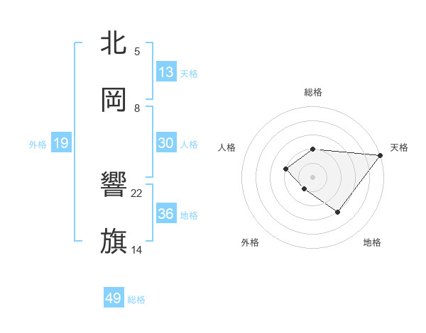北岡 響旗さんの総格は49画の2点!