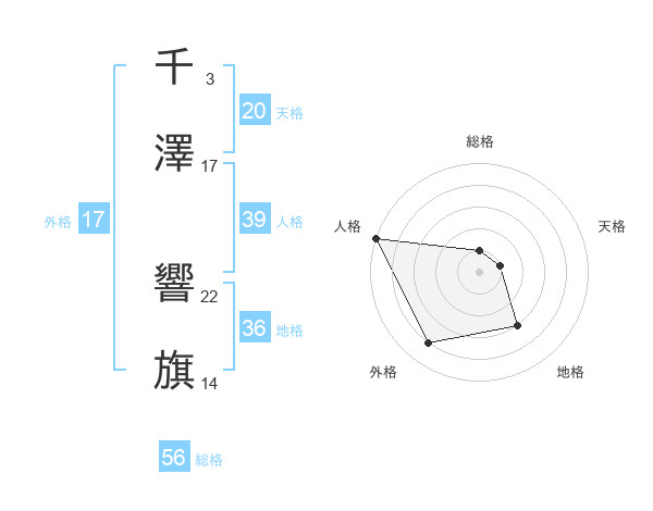 千澤 響旗さんを姓名の画数から五運を鑑定