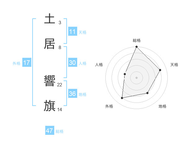 土居 響旗さんの総格は47画の5点!