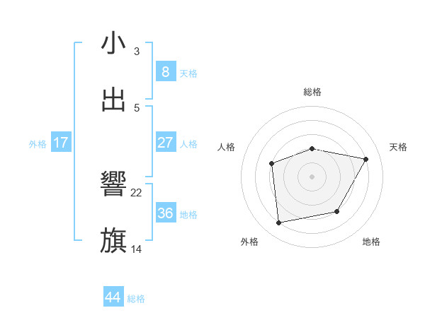 小出 響旗さんの総格は44画の2点!