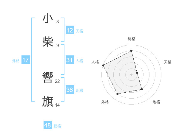 小柴 響旗さんを姓名の画数から五運を鑑定