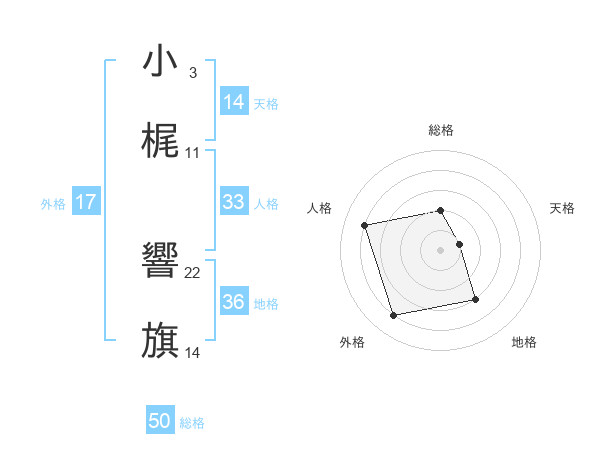 小梶 響旗さんを姓名の画数から五運を鑑定