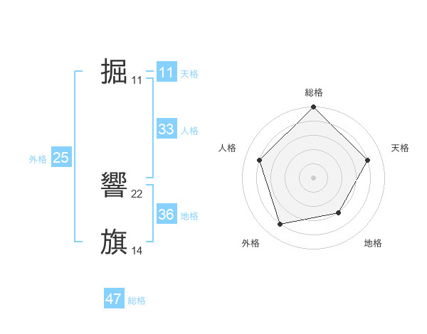 掘 響旗さんの総格は47画の5点!
