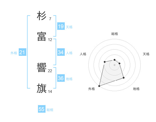 杉富 響旗さんの総格は55画の1点!
