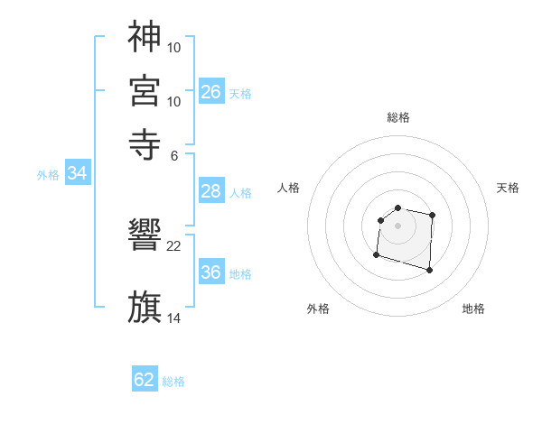 神宮寺 響旗さんを姓名の画数から五運を鑑定