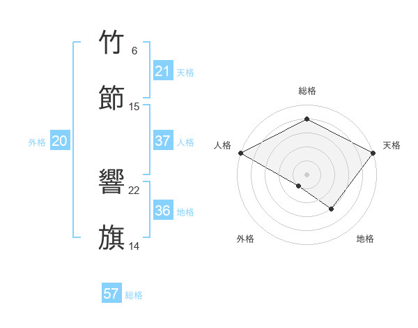 竹節 響旗さんの総格は57画の4点!