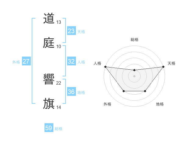道庭 響旗さんの総格は59画の1点!