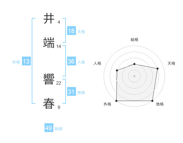 井端 響春さんの総格は49画の2点!