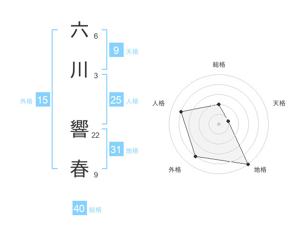 六川 響春さんの総格は40画の2点!