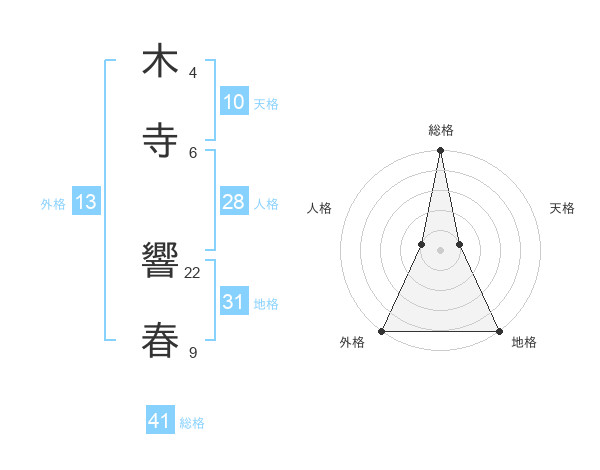 木寺 響春さんの総格は41画の5点!