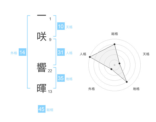 一咲 響暉さんを姓名の画数から五運を鑑定