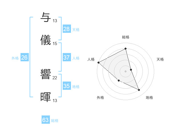 与儀 響暉さんを姓名の画数から五運を鑑定