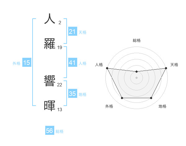 人羅 響暉さんの天格は21画の5点!