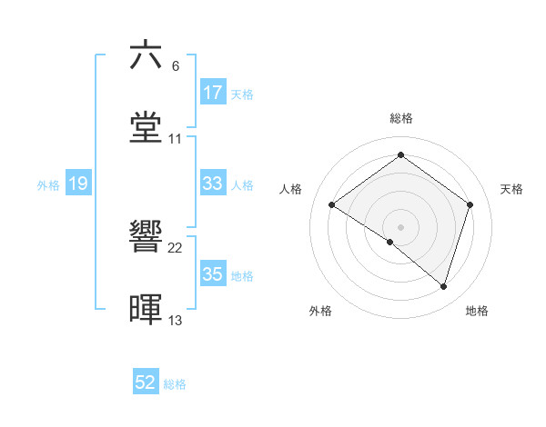 六堂 響暉さんを姓名の画数から五運を鑑定