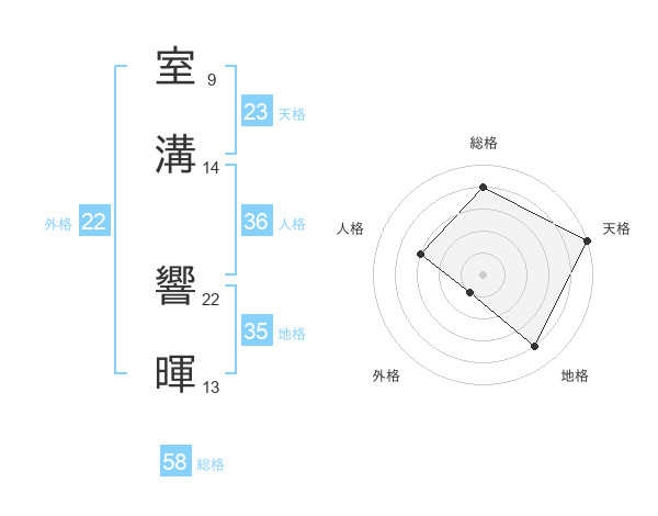 室溝 響暉さんの総格は58画の4点!