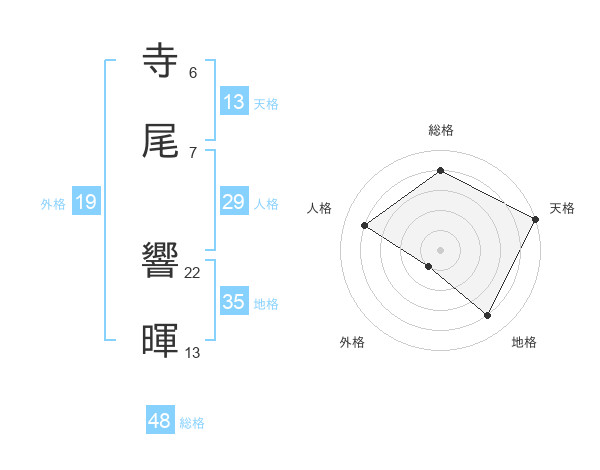 寺尾 響暉さんの総格は48画の4点!