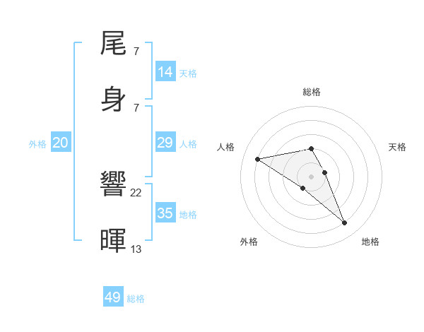 尾身 響暉さんを姓名の画数から五運を鑑定