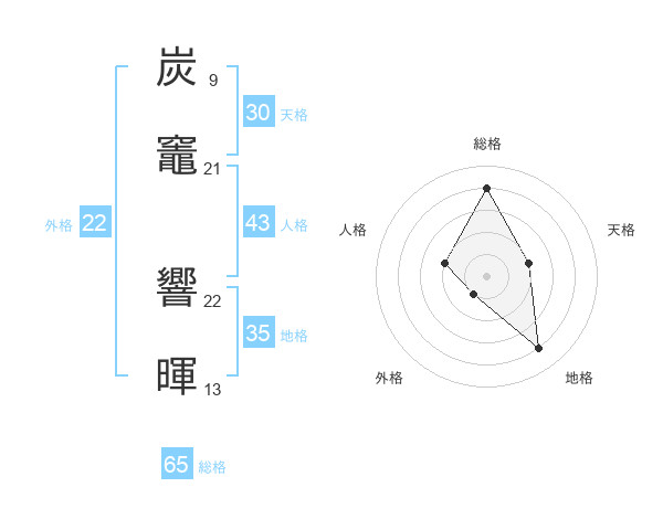 炭竈 響暉さんを姓名の画数から五運を鑑定