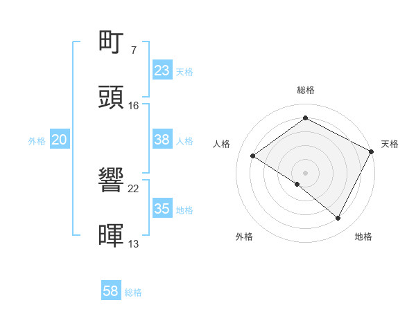 町頭 響暉さんを姓名の画数から五運を鑑定