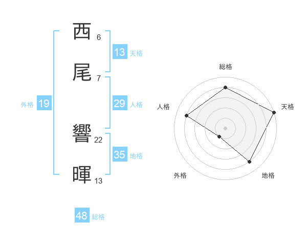 西尾 響暉さんを姓名の画数から五運を鑑定