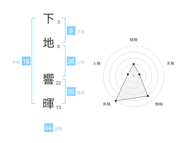 下地 響暉さんの総格は44画の2点!