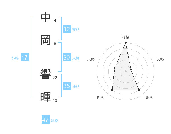 中岡 響暉さんを姓名の画数から五運を鑑定